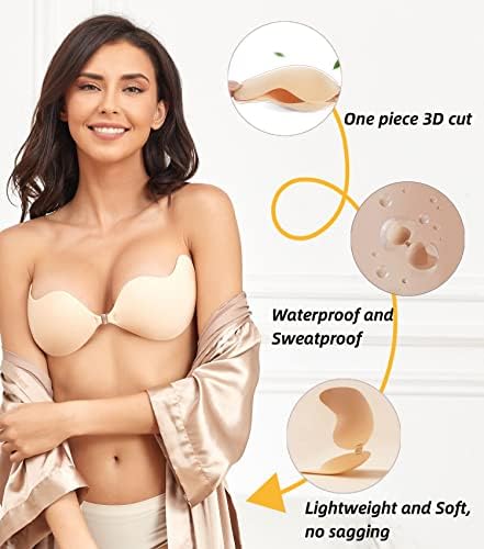 Adarados Super Sticky Invisible Strapless Push up Bra Self Adhesive Reusable Backless Bras for Women