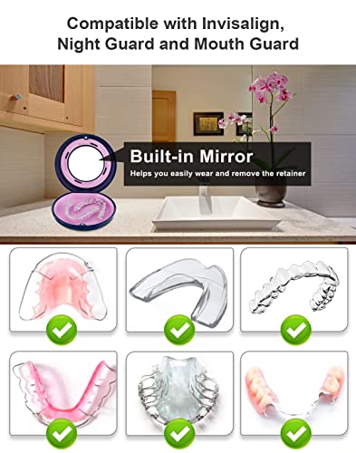 【User-friendly Design 】It includes a built-in mirror that makes it easy to put on and take off your retainer while checking for any food stuck in your teeth. The food-grade silicone pad on the inside keeps the retainer securely in place, complete with built-in textured padding to minimize slippage and movement and reduce rattling noise in pockets and purses.