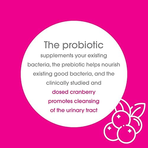 ✔ TRIPLE ACTION … Triple action formula provides probiotics and prebiotics to bolster existing good bacteria and clinically studied/dosed cranberry powder to cleanse your urinary tract.